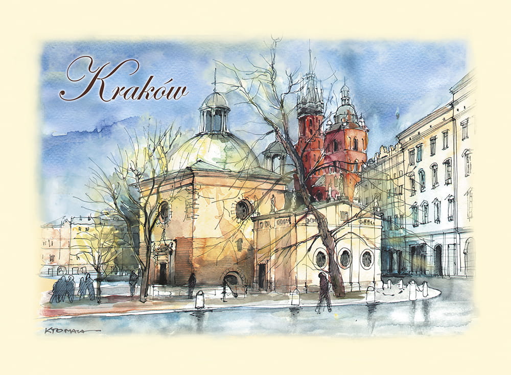 Przedstawia artystyczny obraz najciekawszych widoków i zakątków miasta Krakowa,