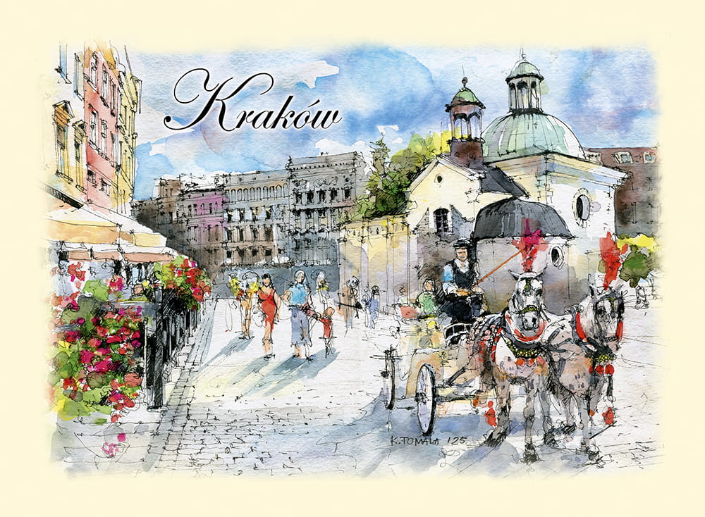 Przedstawia artystyczny obraz najciekawszych widoków i zakątków miasta Krakowa,