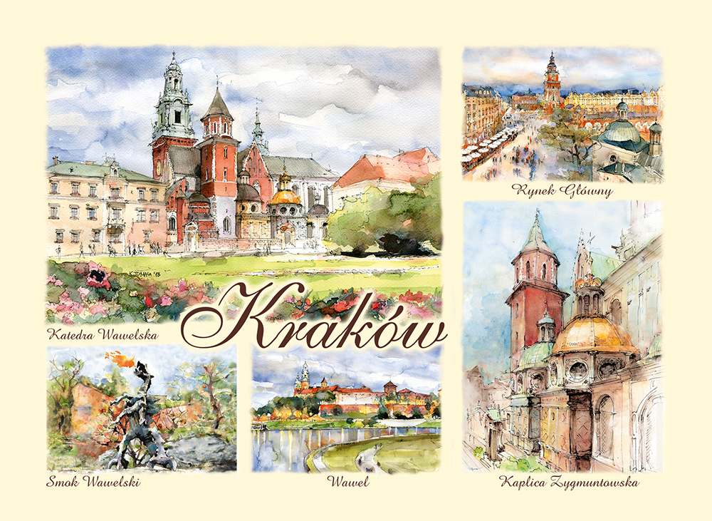 Przedstawia artystyczny obraz najciekawszych widoków i zakątków miasta Krakowa,