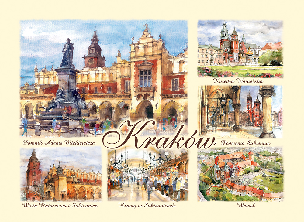 Przedstawia artystyczny obraz najciekawszych widoków i zakątków miasta Krakowa,
