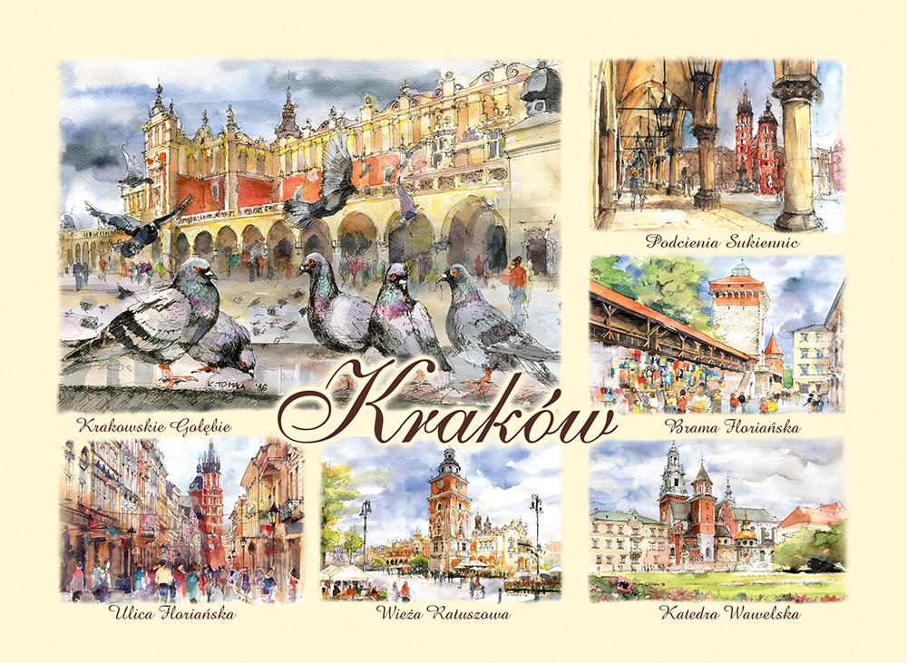 Przedstawia artystyczny obraz najciekawszych widoków i zakątków miasta Krakowa,