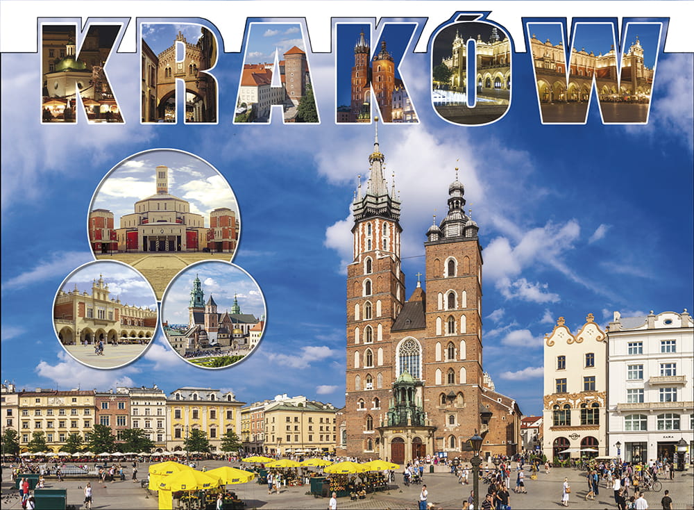 Tradycyjna pamiątka i upominek dla kolekcjonerów. Przedstawia na zdjęciach najciekawsze obiekty Krakowa.