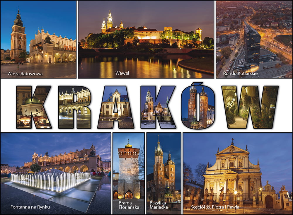 Tradycyjna pamiątka i upominek dla kolekcjonerów. Przedstawia na zdjęciach najciekawsze obiekty Krakowa.