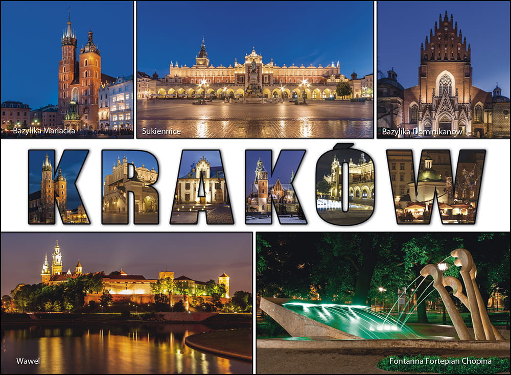Tradycyjna pamiątka i upominek dla kolekcjonerów. Przedstawia na zdjęciach najciekawsze obiekty Krakowa.