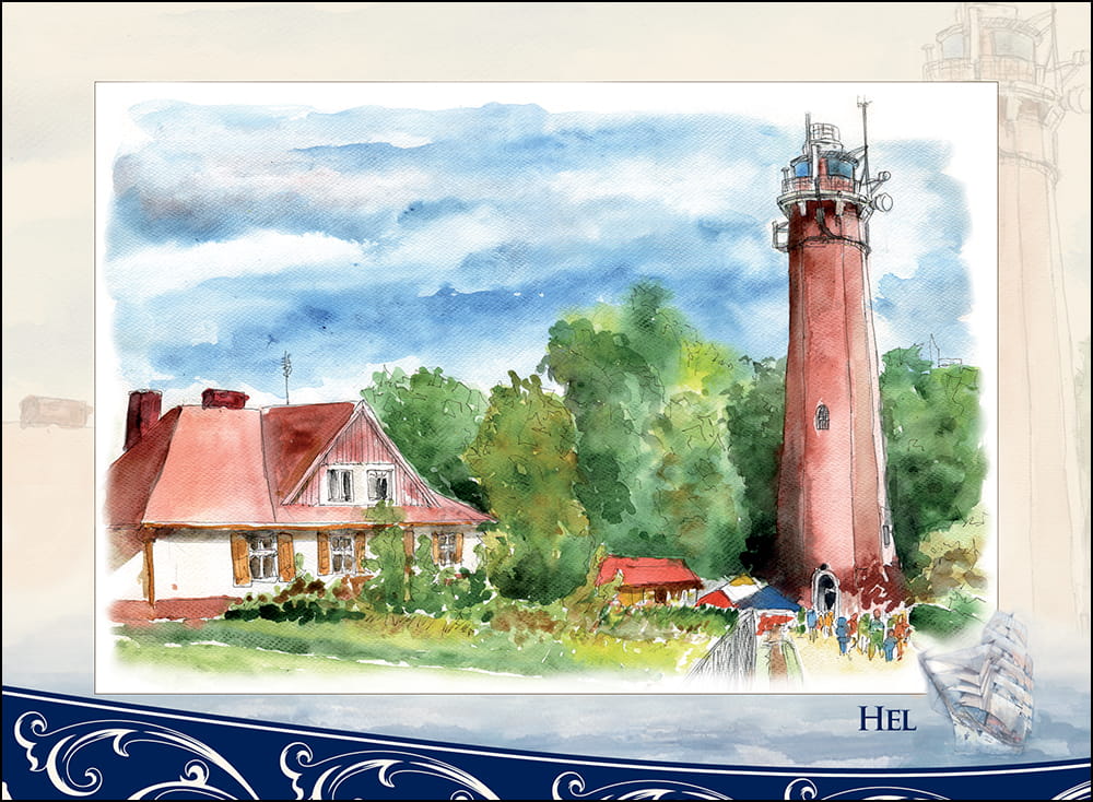 Przedstawia artystyczny obraz polskich latarni morskich,