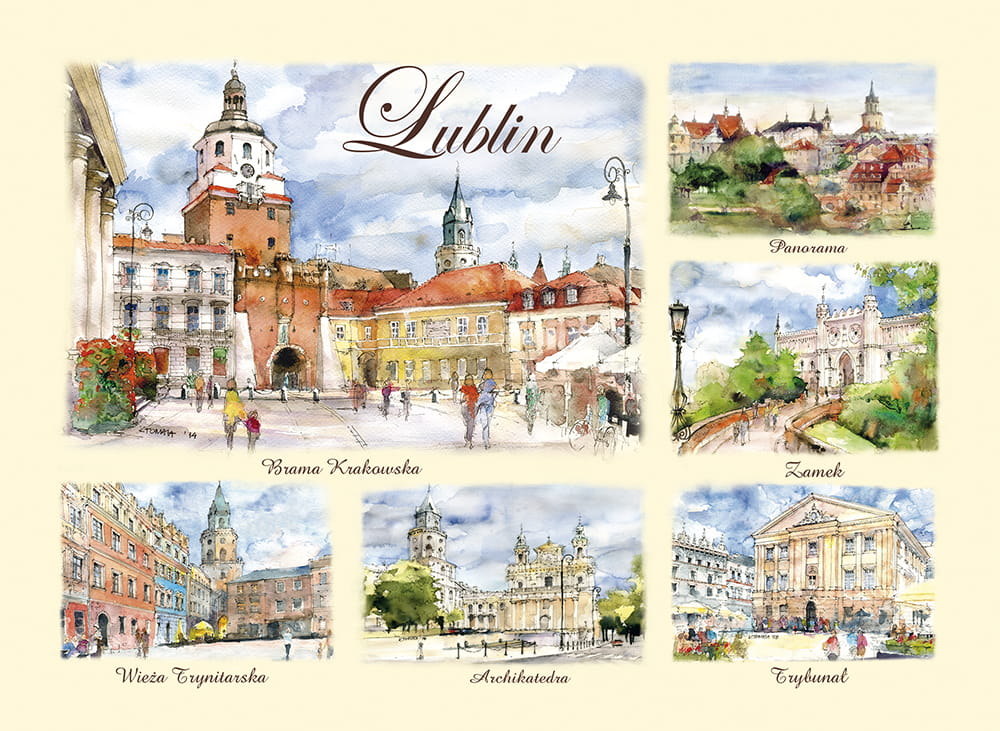 Przedstawia artystyczny obraz najciekawszych widoków i zakątków Lublina,