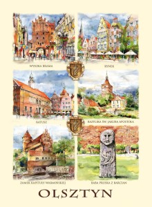 Przedstawia artystyczny obraz najciekawszych widoków i zakątków Olsztyna,