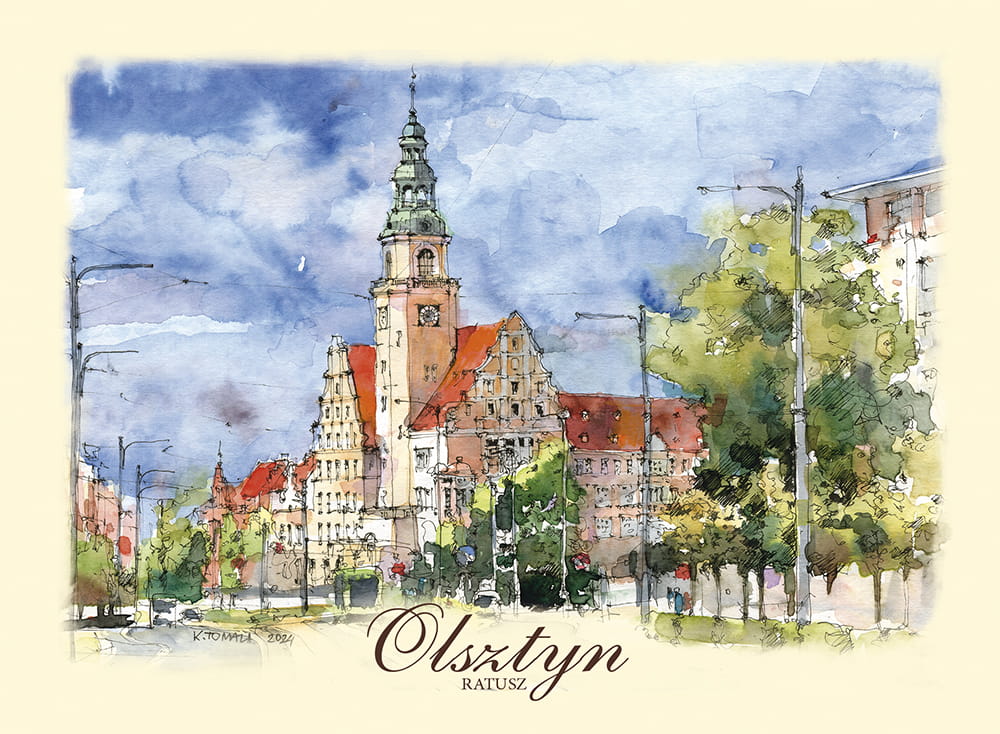 Przedstawia artystyczny obraz najciekawszych widoków i zakątków Olsztyna,