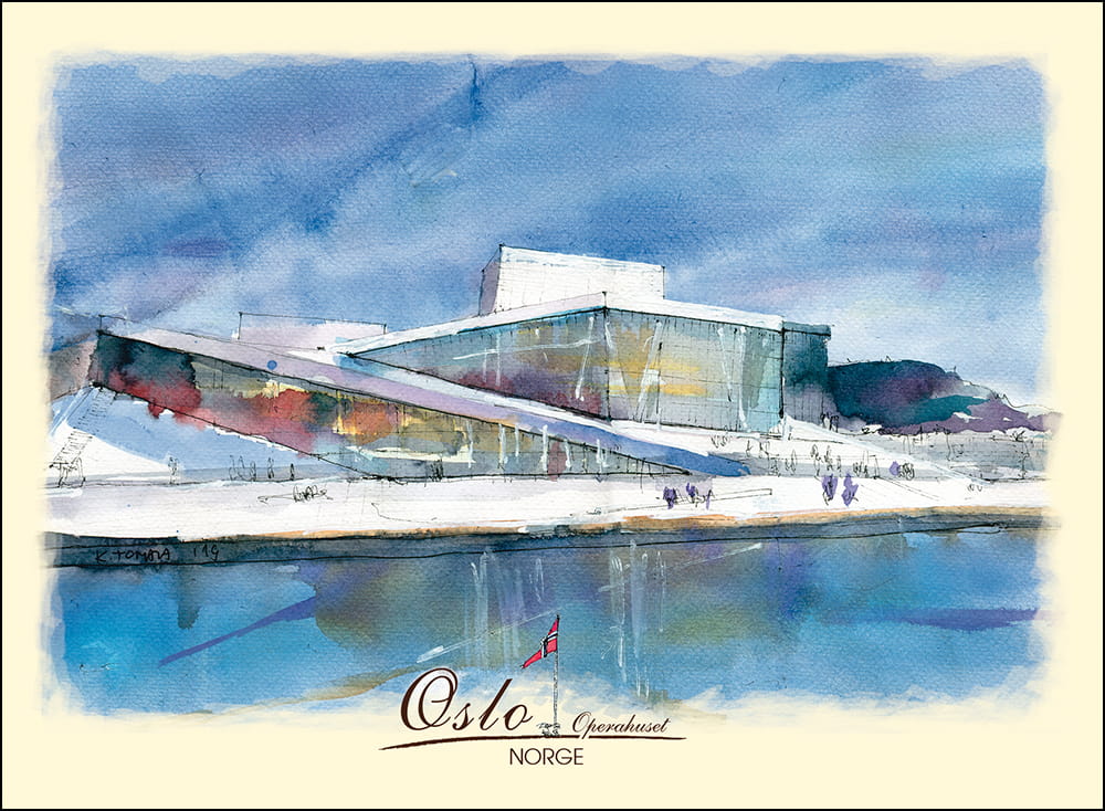 Przedstawia artystyczny obraz najciekawszych widoków i zakątków Oslo,