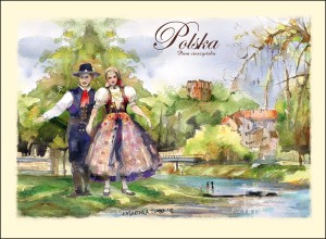 Przedstawia artystyczny obraz najciekawszych polskich strojów ludowych,