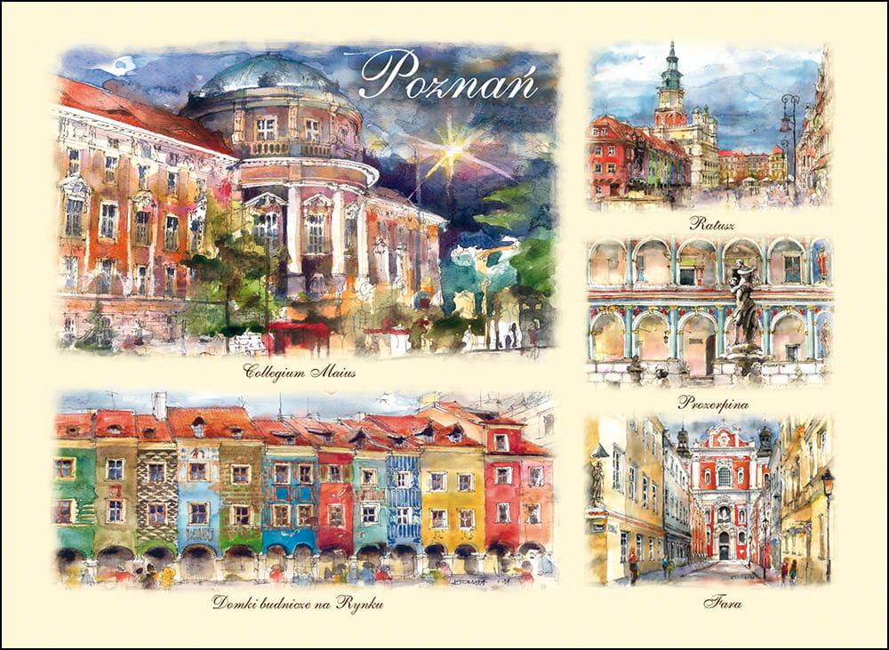 Przedstawia artystyczny obraz najciekawszych widoków i zakątków Poznania,
