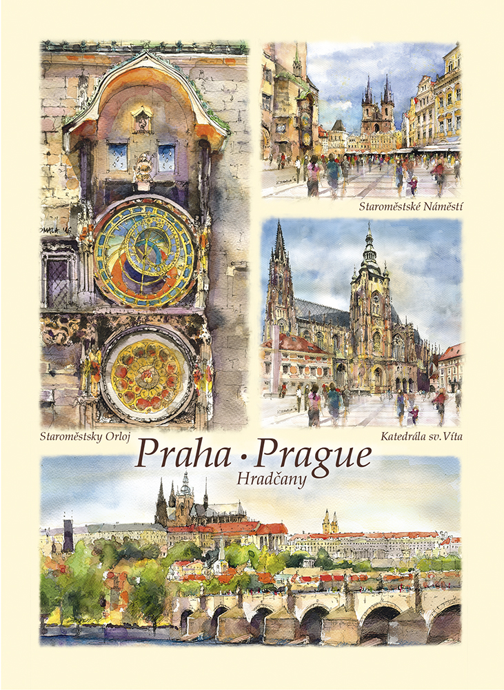 Przedstawia artystyczny obraz najciekawszych widoków i zakątków Pragi,