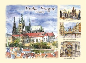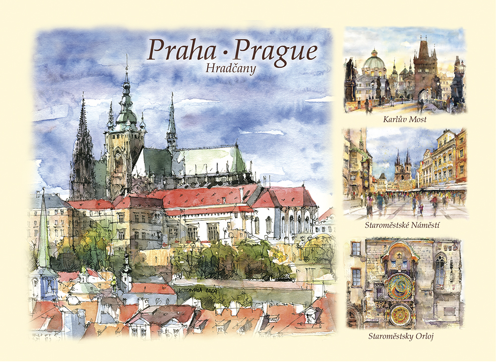 Przedstawia artystyczny obraz najciekawszych widoków i zakątków Pragi,