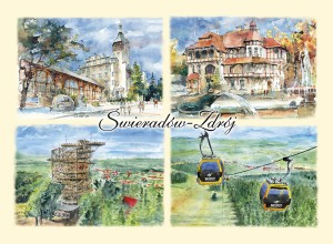 Przedstawia artystyczny obraz najciekawszych widoków i zakątków Świeradowa Zdroju,