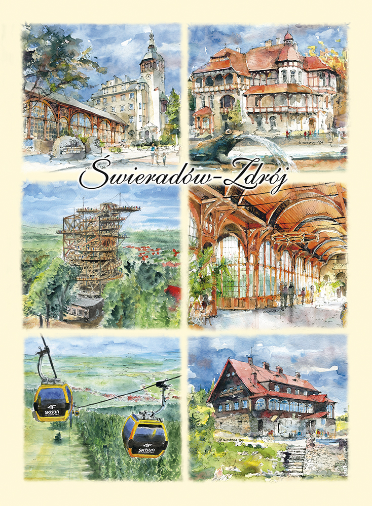 Przedstawia artystyczny obraz najciekawszych widoków i zakątków Świeradowa Zdroju,