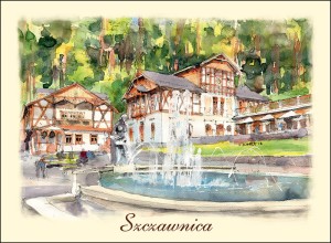 Przedstawia artystyczny obraz najciekawszych widoków i zakątków Szczawnicy,