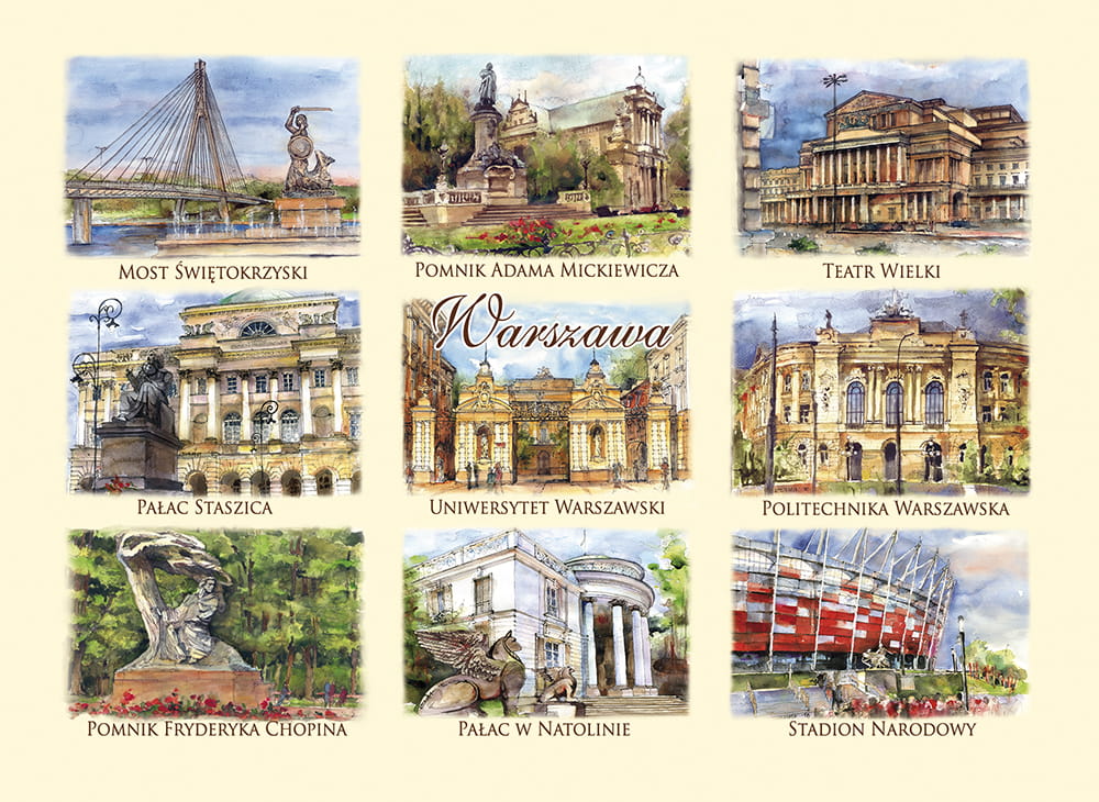 Przedstawia artystyczny obraz najciekawszych widoków i zakątków Warszawy,