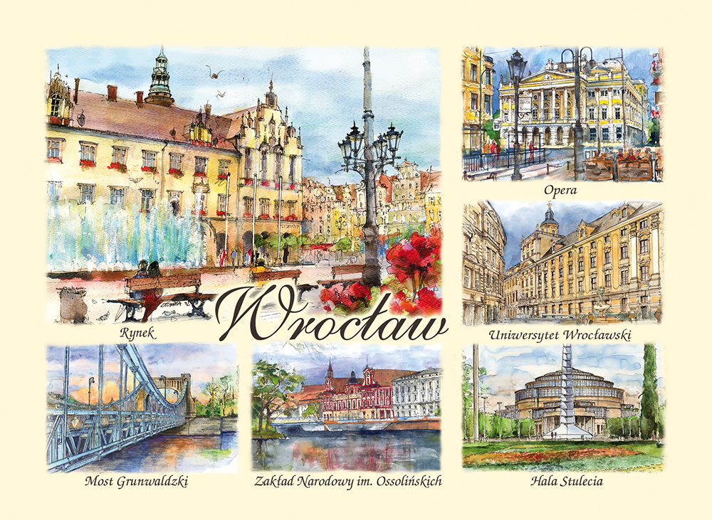 Przedstawia artystyczny obraz najciekawszych widoków i zakątków Wrocławia,
