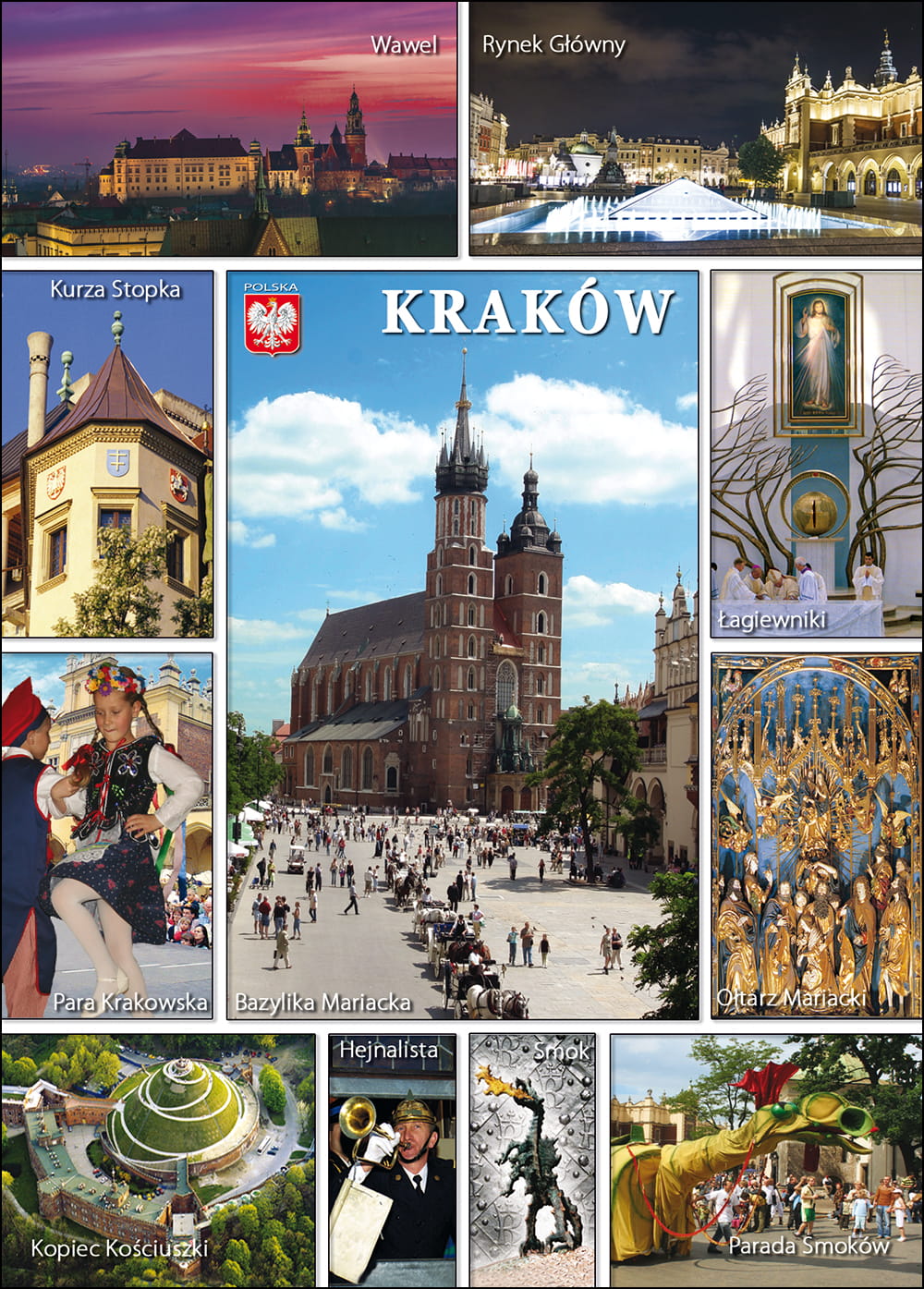 Tradycyjna pamiątka i upominek dla kolekcjonerów. Przedstawia na zdjęciach najciekawsze obiekty Krakowa.