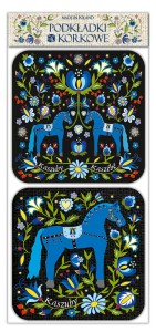 Podkładka korkowa, komplet, zestaw podkładek pod kubek folk Kaszuby 4 szt.