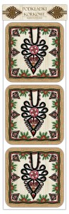 Komplet 6 sztuk podkładek pod kubek z wzornictwem opartym na tradycyjnych wzorach ludowych, opracowany przez wydawnictwo „Czwórka” na bazie motywów podhalańskiej kultury ludowej.