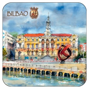 Wzór opracowany przez wydawnictwo "Czwórka" na podstawie obrazów akwarelowych tworzonych na nasz wyłączny użytek przez p.Katarzynę Tomalę. Przedstawia artystyczny obraz najciekawszych obiektów Bilbao.