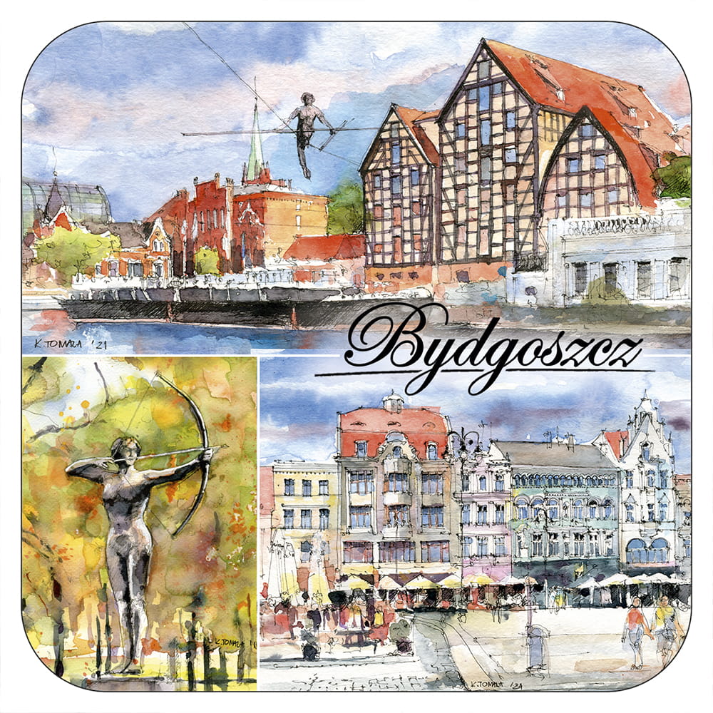 Wzór opracowany przez wydawnictwo "Czwórka" na podstawie obrazów akwarelowych tworzonych na nasz wyłączny użytek przez p.Katarzynę Tomalę. Przedstawia artystyczny obraz najciekawszych obiektów Bydgoszczy.
