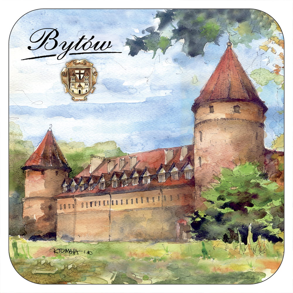 Wzór opracowany przez wydawnictwo "Czwórka" na podstawie obrazów akwarelowych tworzonych na nasz wyłączny użytek przez p.Katarzynę Tomalę. Przedstawia artystyczny obraz najciekawszych obiektów miasta Bytów.