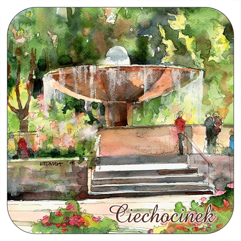 Wzór opracowany przez wydawnictwo "Czwórka" na podstawie obrazów akwarelowych tworzonych na nasz wyłączny użytek przez p.Katarzynę Tomalę. Przedstawia artystyczny obraz najciekawszych obiektów Ciechocinka.