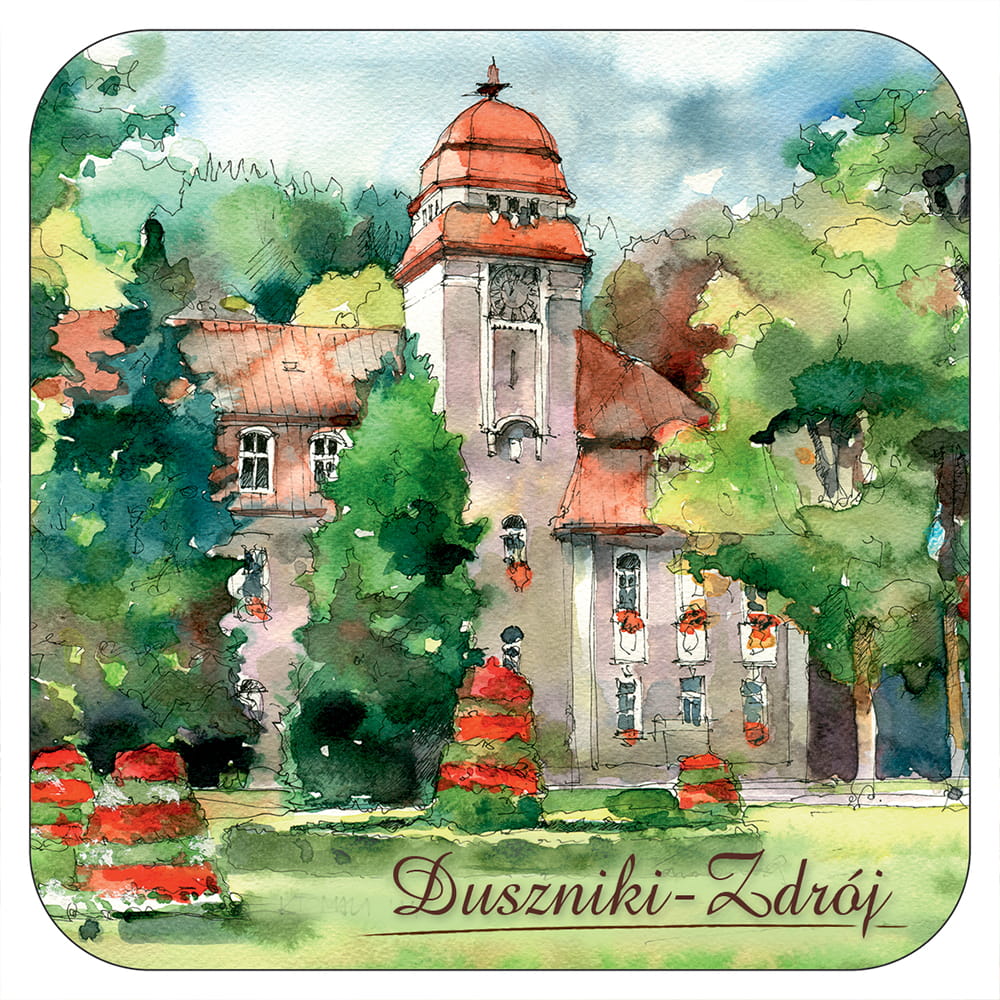 Podkładka korkowa pod kubek Duszniki Zdrój 01 akwarele