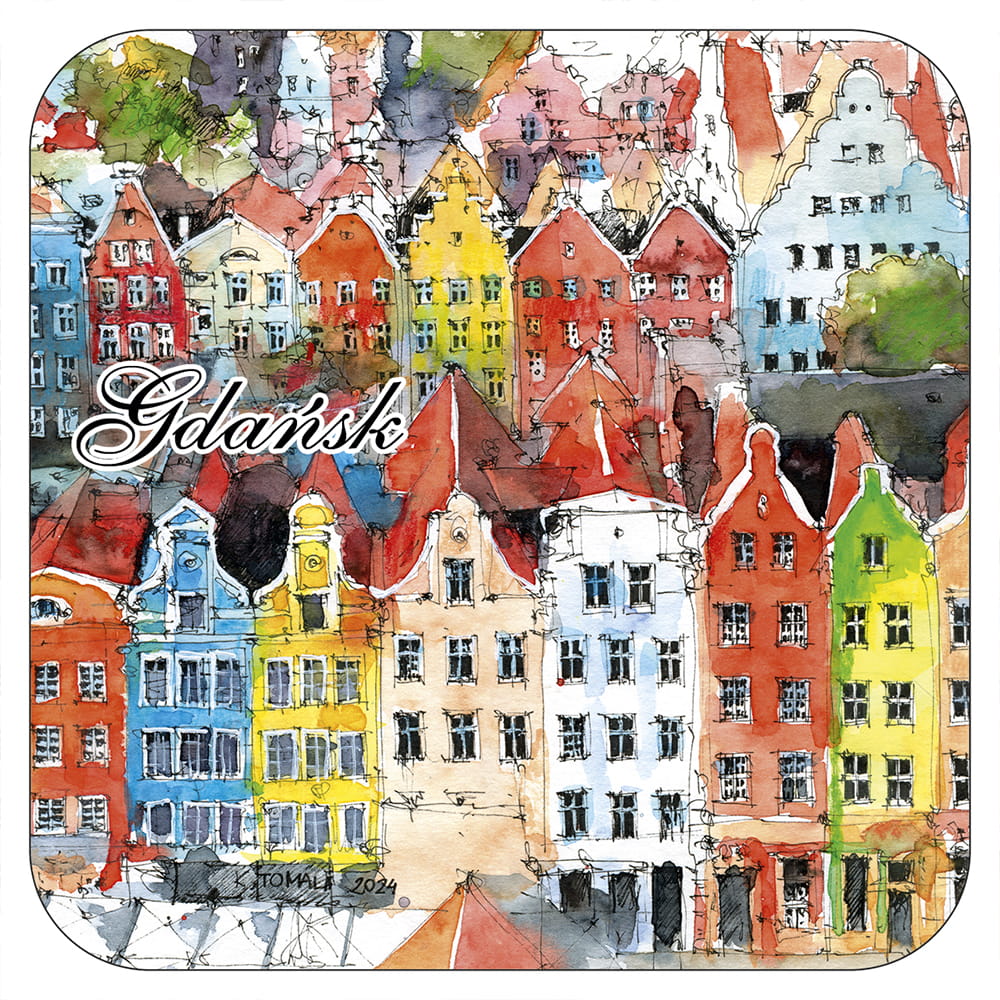 Wzór opracowany przez wydawnictwo "Czwórka" na podstawie obrazów akwarelowych tworzonych na nasz wyłączny użytek przez p.Katarzynę Tomalę. Przedstawia artystyczny obraz najciekawszych obiektów Gdańska.