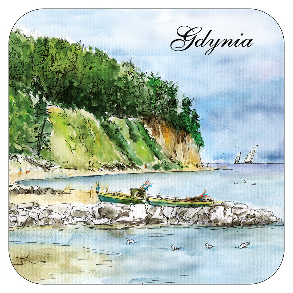 Wzór opracowany przez wydawnictwo "Czwórka" na podstawie obrazów akwarelowych tworzonych na nasz wyłączny użytek przez p.Katarzynę Tomalę. Przedstawia artystyczny obraz najciekawszych obiektów Gdyni.
