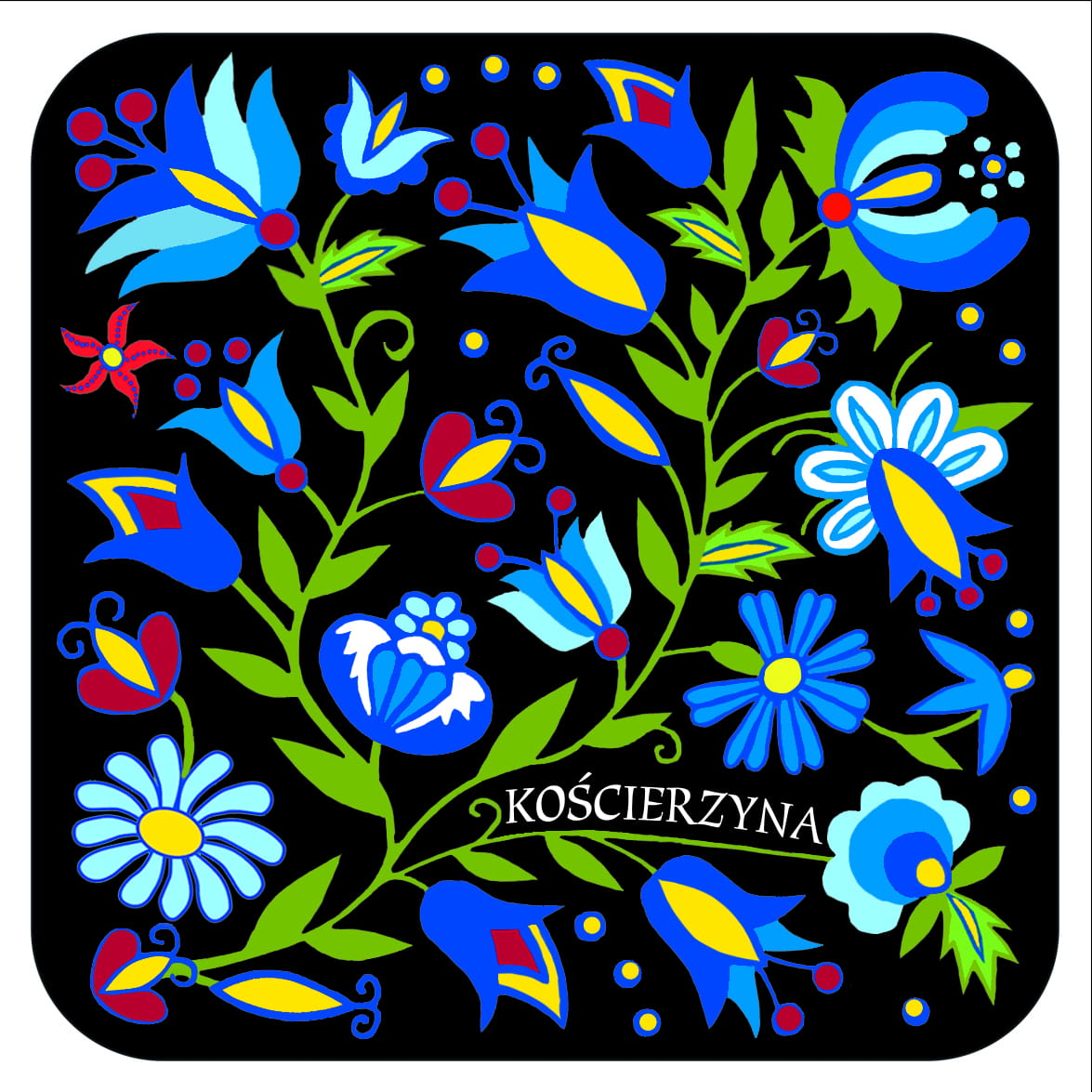 Wzór opracowany przez wydawnictwo "Czwórka" na podstawie motywów wzorowanych na tradycyjnym hafcie kaszubskim.