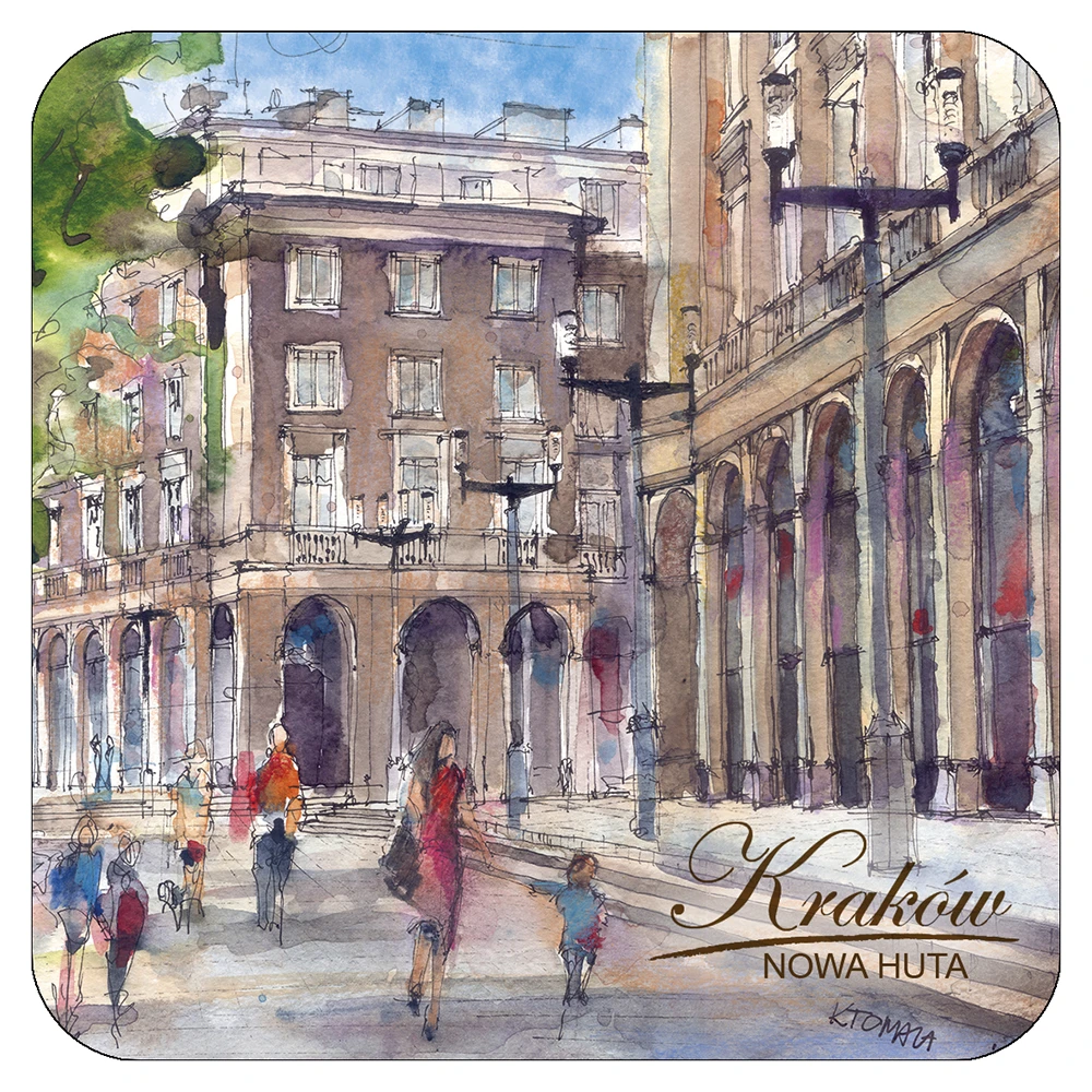 Wzór opracowany przez wydawnictwo "Czwórka" na podstawie obrazów akwarelowych tworzonych na nasz wyłączny użytek przez p. Katarzynę Tomalę. Przedstawia artystyczny obraz najciekawszych obiektów jednej z dzielnic Krakowa - Nowej Huty .