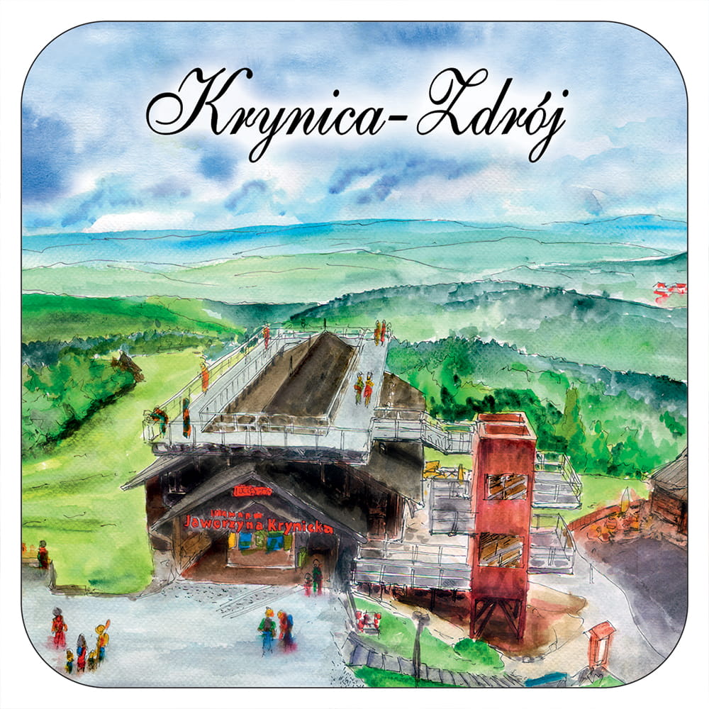 Wzór opracowany przez wydawnictwo "Czwórka" na podstawie obrazów akwarelowych tworzonych na nasz wyłączny użytek przez p.Krzysztofa Korzeniaka. Przedstawia artystyczny obraz najciekawszych obiektów Krynicy Zdroju.