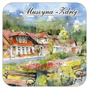 Wzór opracowany przez wydawnictwo "Czwórka" na podstawie obrazów akwarelowych tworzonych na nasz wyłączny użytek przez p.Katarzynę Tomalę. Przedstawia artystyczny obraz najciekawszych obiektów Muszyny Zdroju.