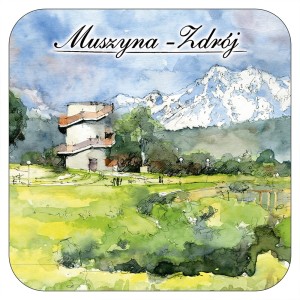 Wzór opracowany przez wydawnictwo "Czwórka" na podstawie obrazów akwarelowych tworzonych na nasz wyłączny użytek przez p.Katarzynę Tomalę. Przedstawia artystyczny obraz najciekawszych obiektów Muszyny Zdroju.
