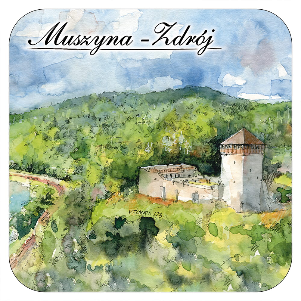Wzór opracowany przez wydawnictwo "Czwórka" na podstawie obrazów akwarelowych tworzonych na nasz wyłączny użytek przez p.Katarzynę Tomalę. Przedstawia artystyczny obraz najciekawszych obiektów Muszyny Zdroju.