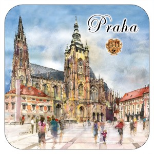 Podkładka korkowa pod kubek Praga Praha Prague 05 akwarele
