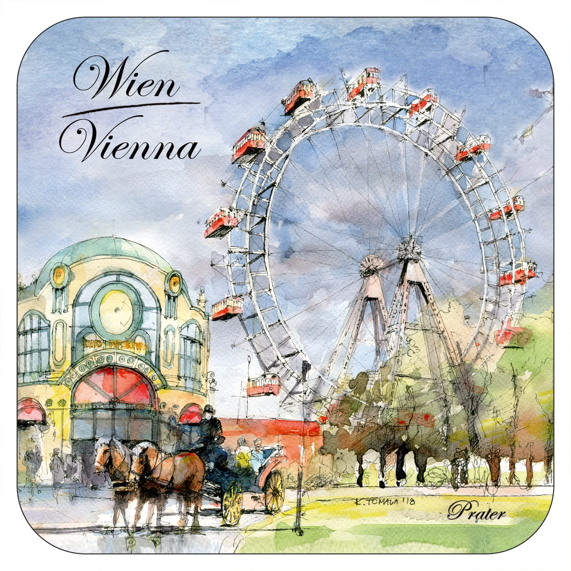 Wzór opracowany przez wydawnictwo "Czwórka" na podstawie obrazów akwarelowych tworzonych na nasz wyłączny użytek przez p.Katarzynę Tomalę. Przedstawia artystyczny obraz najciekawszych ujęć Wiednia.