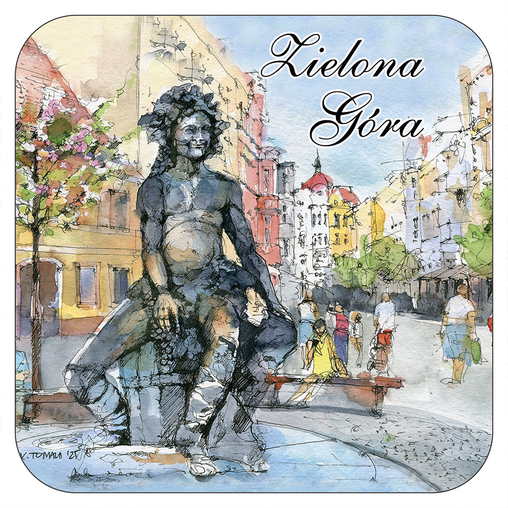 Wzór opracowany przez wydawnictwo "Czwórka" na podstawie obrazów akwarelowych tworzonych na nasz wyłączny użytek przez p.Katarzynę Tomalę. Przedstawia artystyczny obraz najciekawszych obiektów Zielonej Góry.