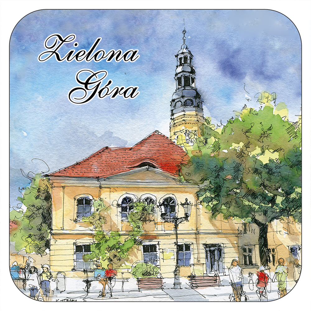 Wzór opracowany przez wydawnictwo "Czwórka" na podstawie obrazów akwarelowych tworzonych na nasz wyłączny użytek przez p.Katarzynę Tomalę. Przedstawia artystyczny obraz najciekawszych obiektów Zielonej Góry.