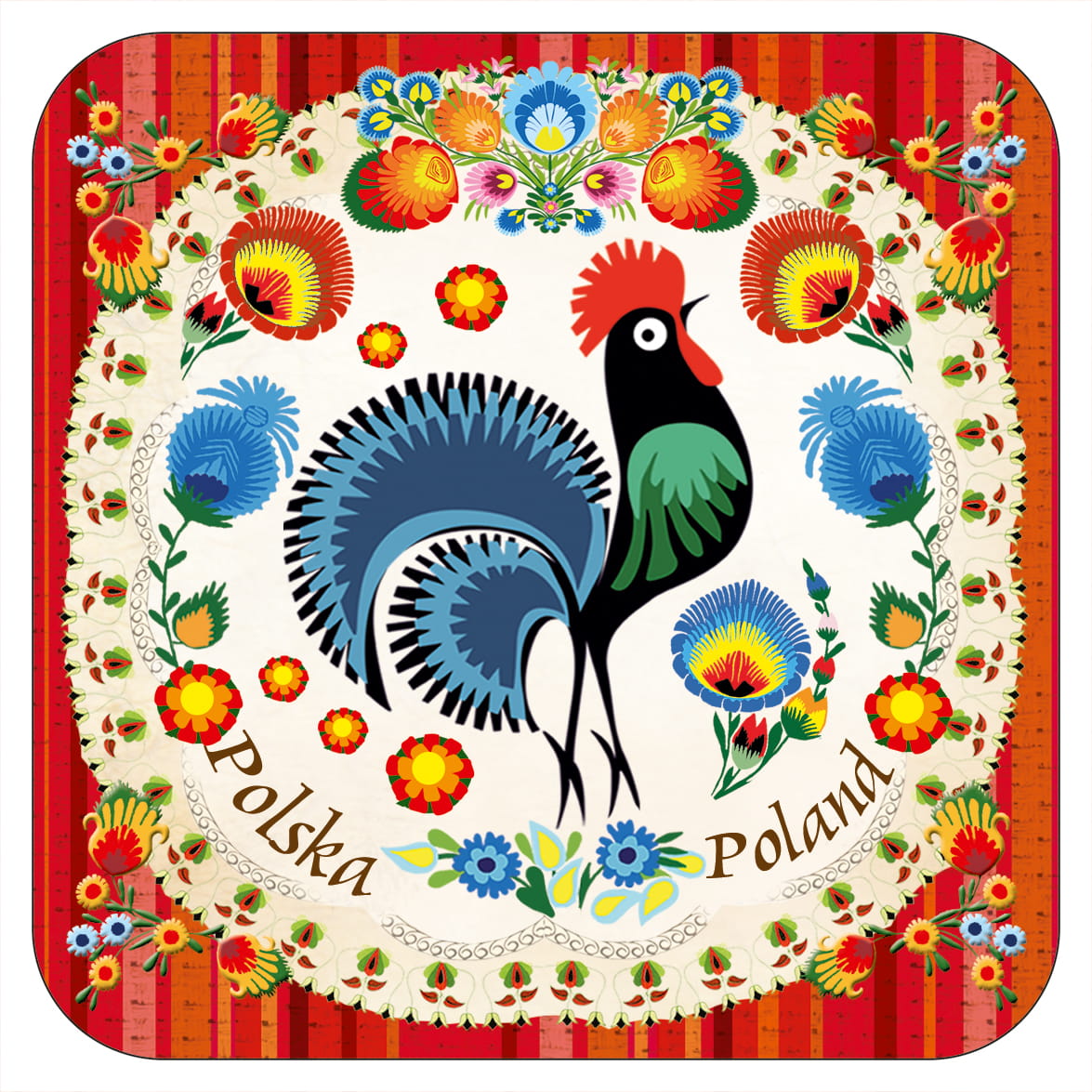 Podkładka korkowa pod kubek folk 119 wycinanka łowicka kogut