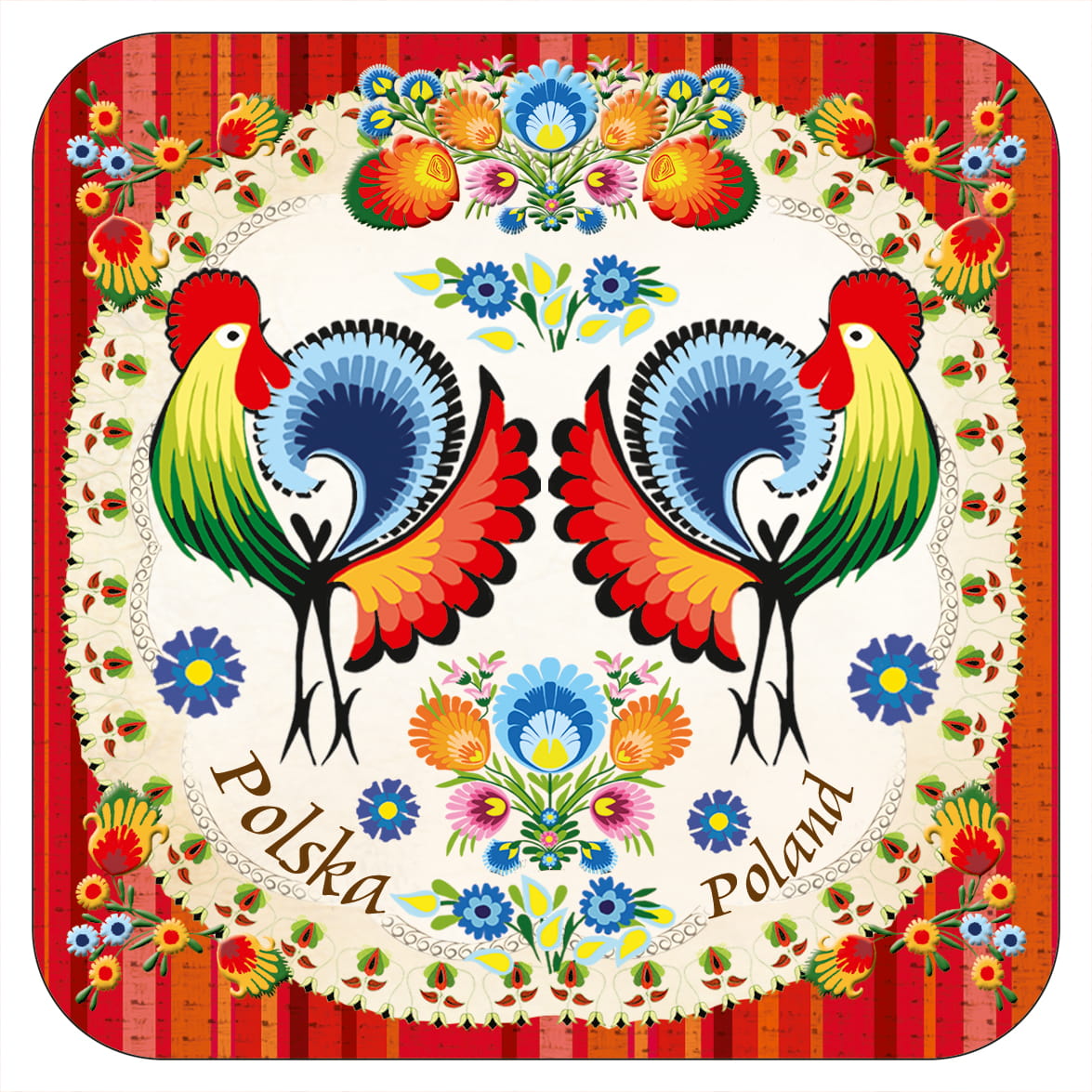 Podkładka korkowa pod kubek folk 120 wycinanka łowicka koguty