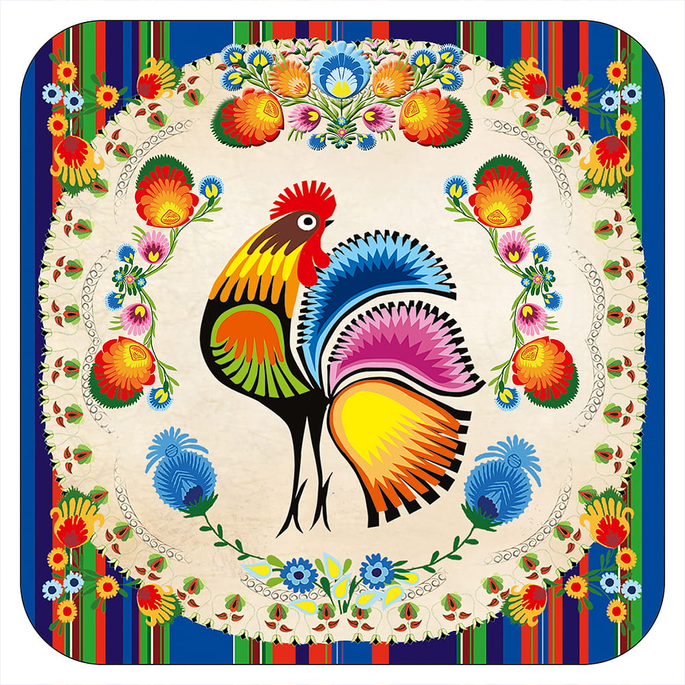 Podkładka korkowa pod kubek folk 216 wycinanka łowicka koguty