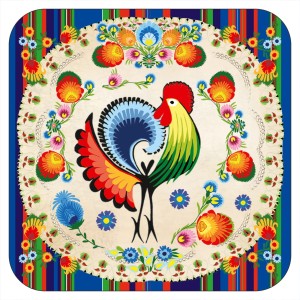Podkładka korkowa pod kubek folk 229 wycinanka łowicka koguty