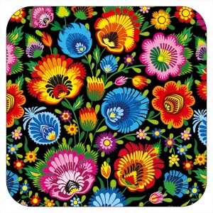 Wzór oparty na tradycyjnej polskiej twórczości ludowej z okolic Łowicza, opracowany przez wydawnictwo „Czwórka” na bazie prac artystki ludowej pani Mirosławy Stefaniak.