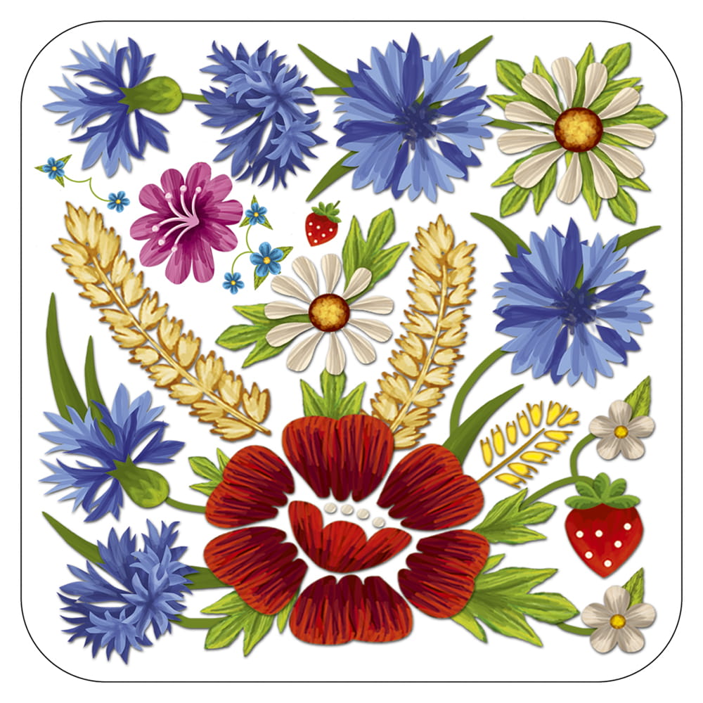 Wzór oparty na tradycyjnej polskiej twórczości ludowej, opracowany przez wydawnictwo „Czwórka”.