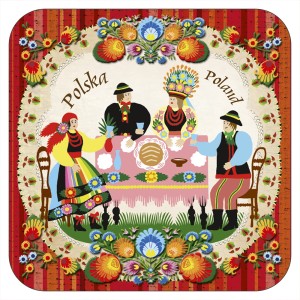 Wzór oparty na tradycyjnej polskiej twórczości ludowej z okolic Łowicza, opracowany przez wydawnictwo „Czwórka” na bazie prac artystki ludowej pani Mirosławy Stefaniak.