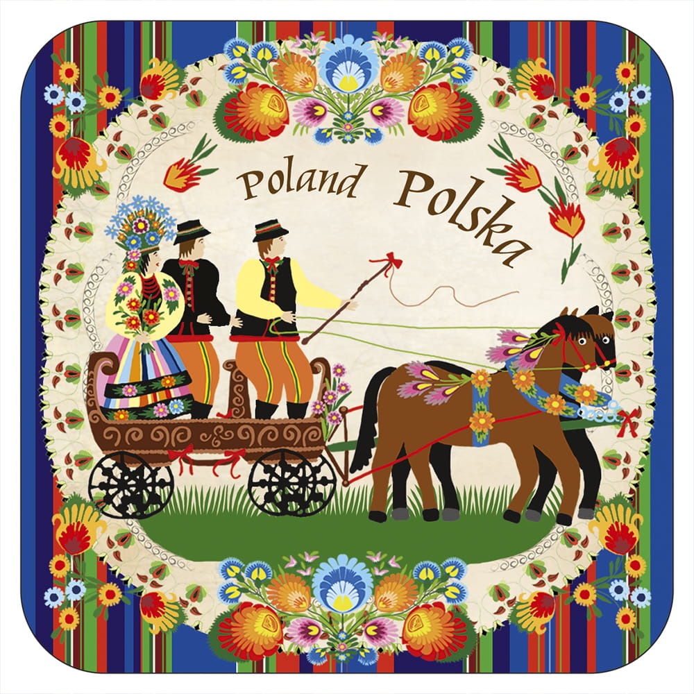 Wzór oparty na tradycyjnej polskiej twórczości ludowej z okolic Łowicza, opracowany przez wydawnictwo „Czwórka” na bazie prac artystki ludowej pani Mirosławy Stefaniak.